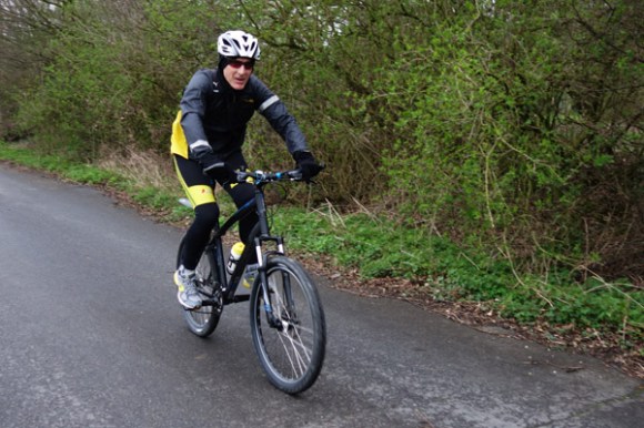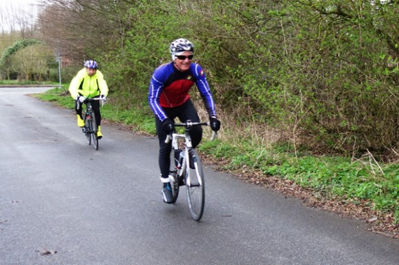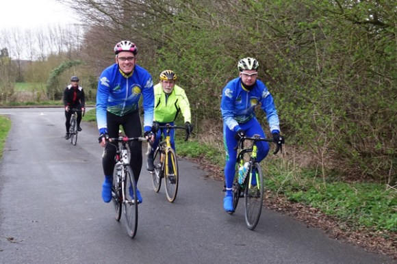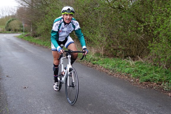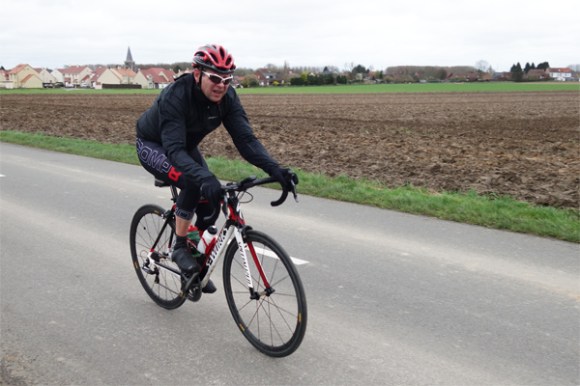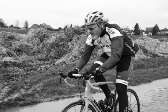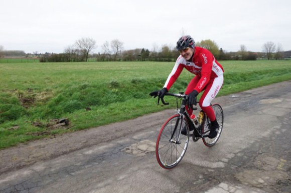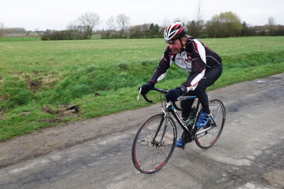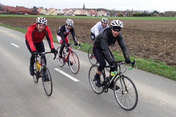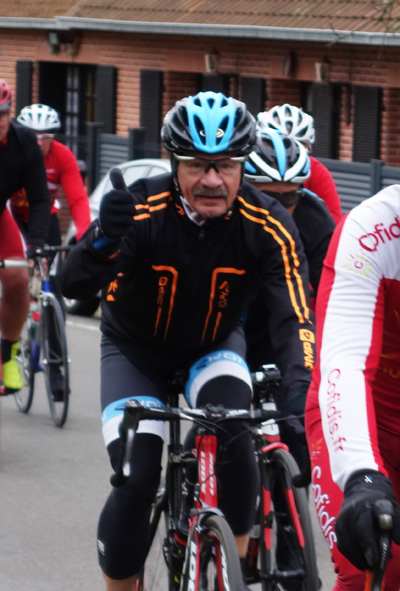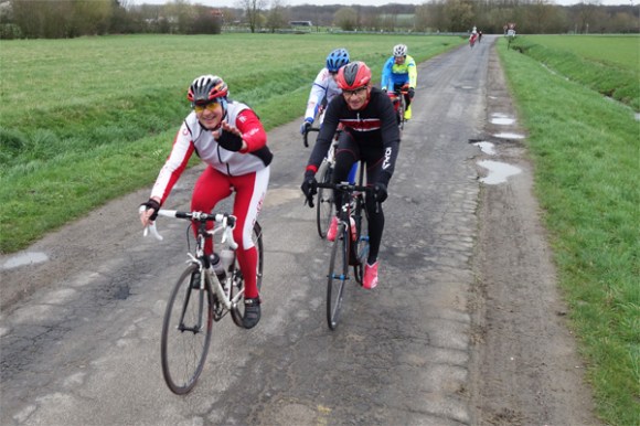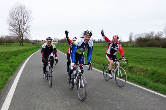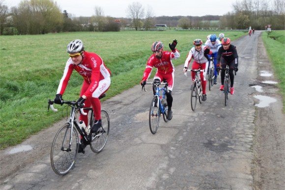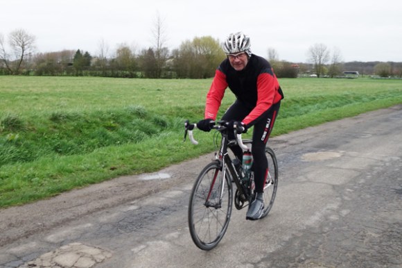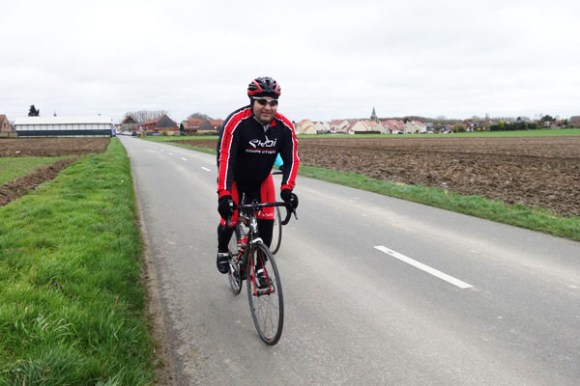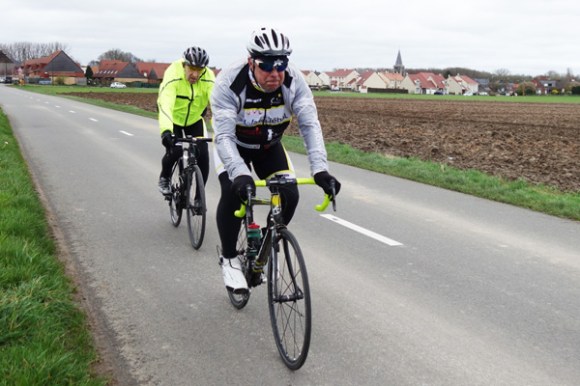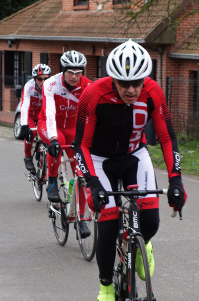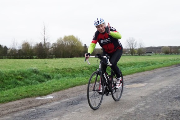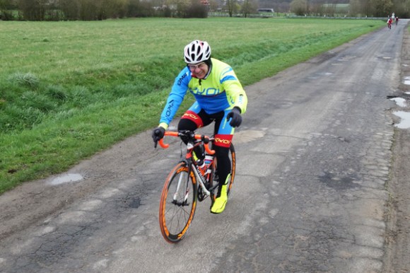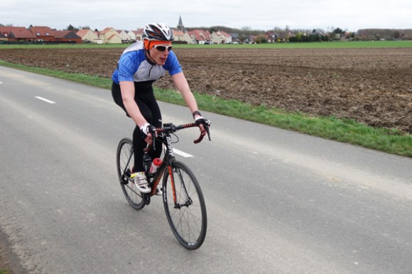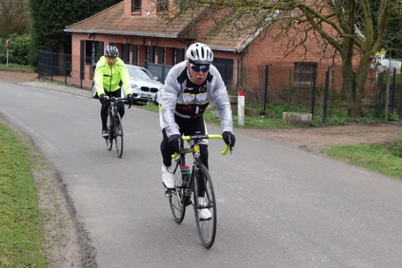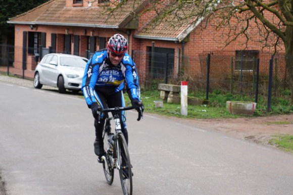 C’est parti, petite côte à la sortie de Bouvines. Ce lambersartois devait être un peu pressé car nous ne retrouverons ses coéquipiers que bien plus tard.
