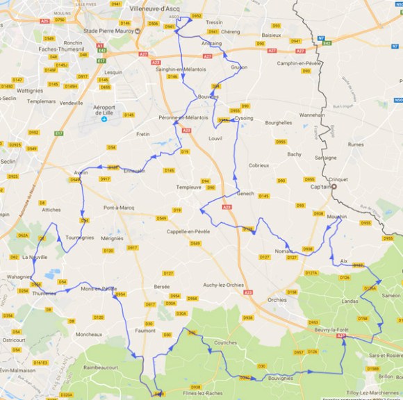 Le tracé, très connu jusque Mons en Pévèle était ensuite plus dépaysant pour le cycliste Lillois. Certains tronçons entre Raimbeaucourt et Couttiches me parurent inédits en ce qui me concerne.