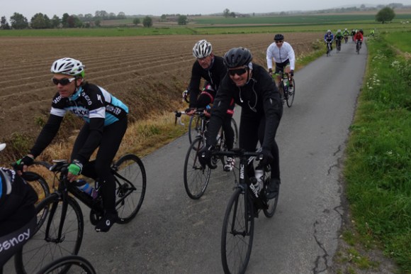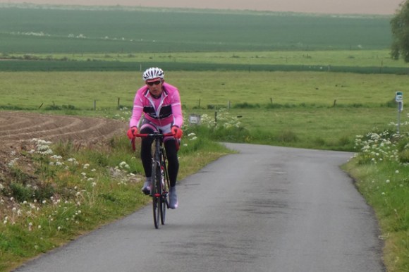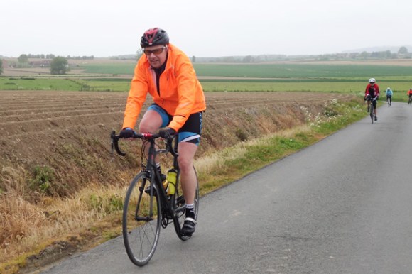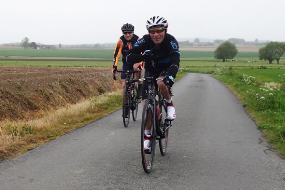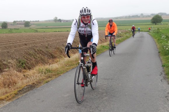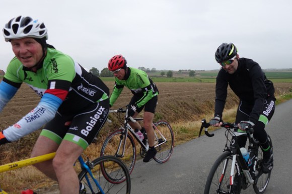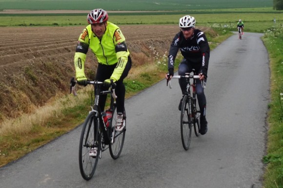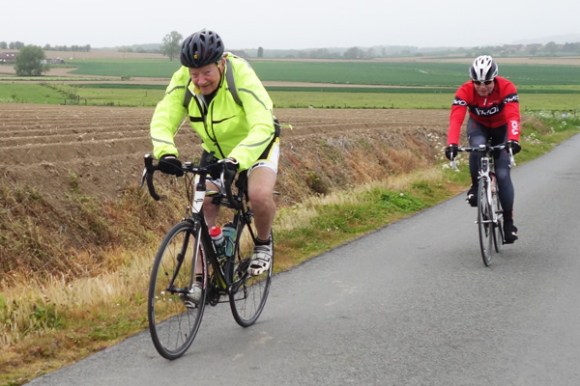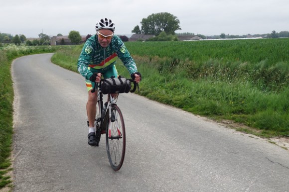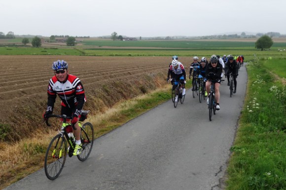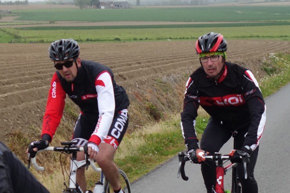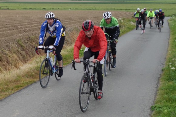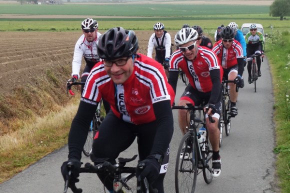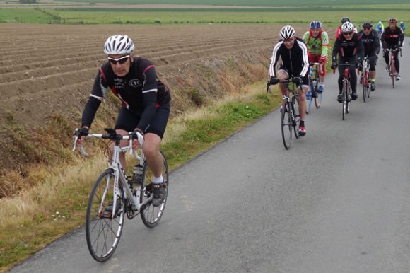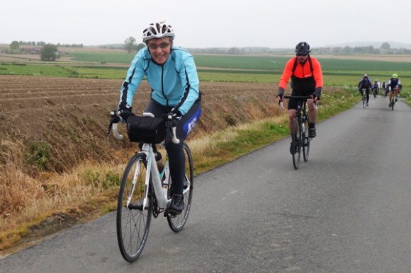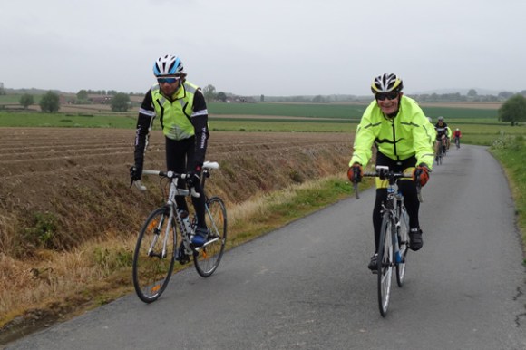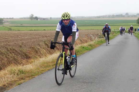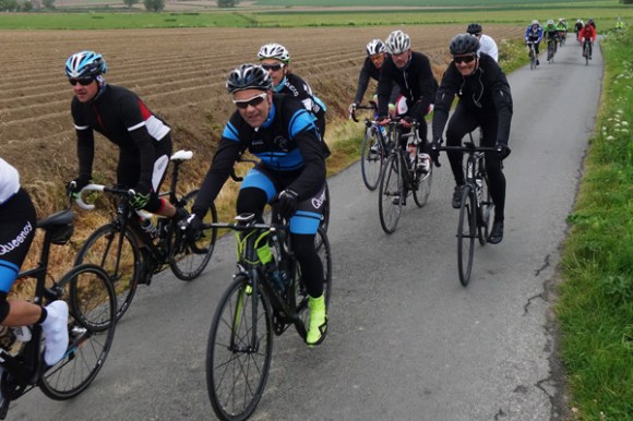Deuxième partie de cette randonnée où l’on retrouve des cyclos qui affichent pour certains une revigorante bonne humeur, propre à chasser la grisaille et la fraicheur ambiantes.