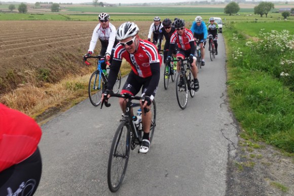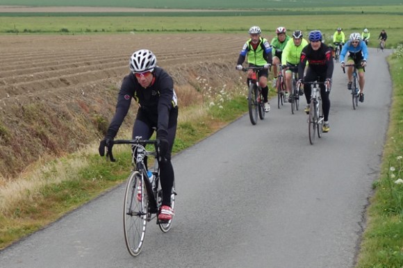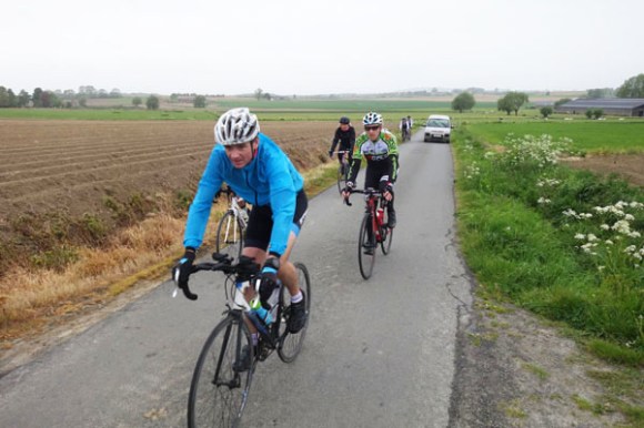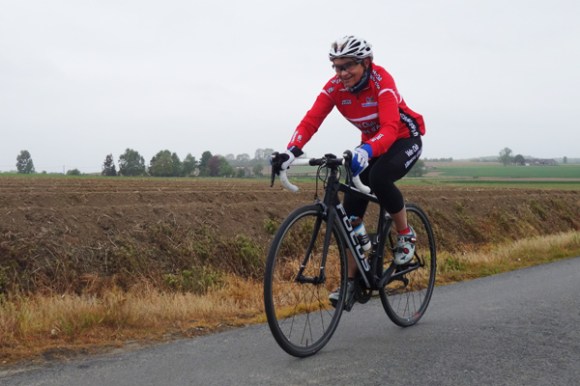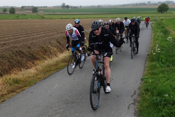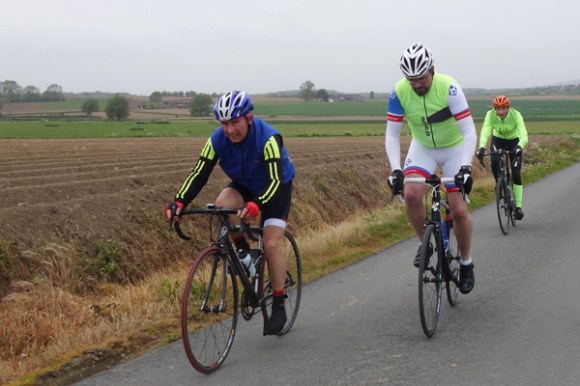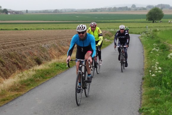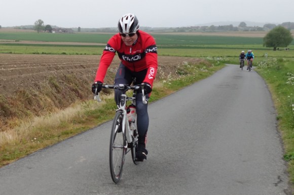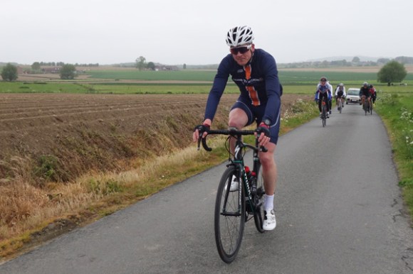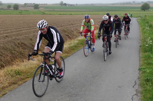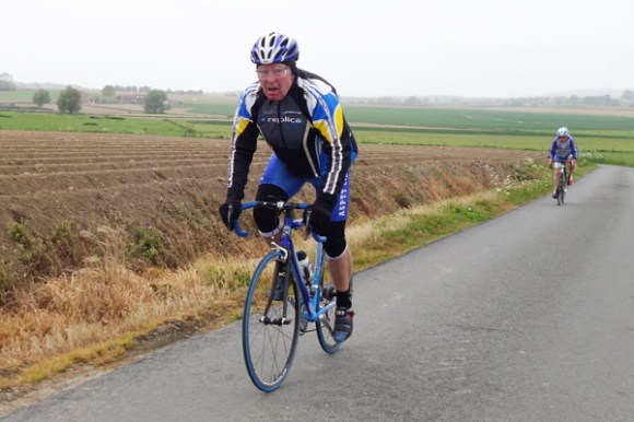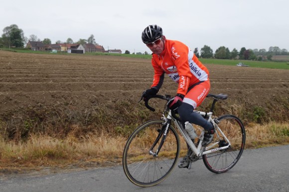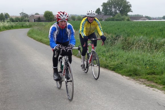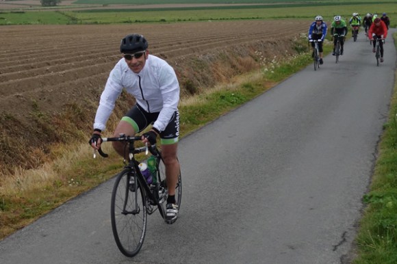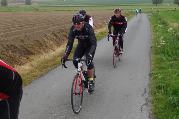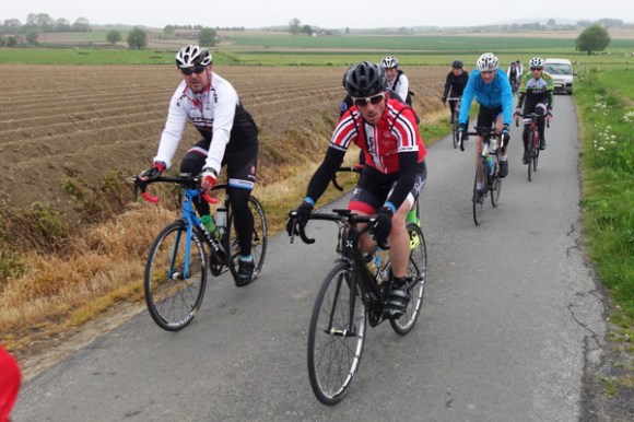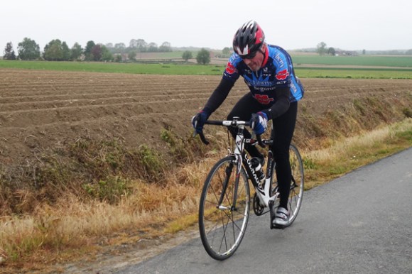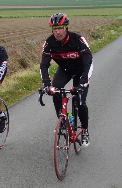 Deuxième partie de cette randonnée où l’on retrouve des cyclos qui affichent pour certains une revigorante bonne humeur, propre à chasser la grisaille et la fraicheur ambiantes.