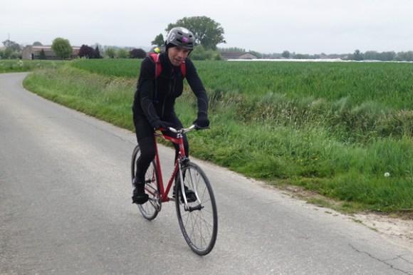 … ce n’est pas un moyeu à vitesses intégrées mais mono-pignon, comme en atteste le seul frein avant et l’absence de changement de vitesse. Bravo! A-t-il le projet d’un Lille Hardelot sur un tel vélo, ce que j’ai vu en 2014 ?