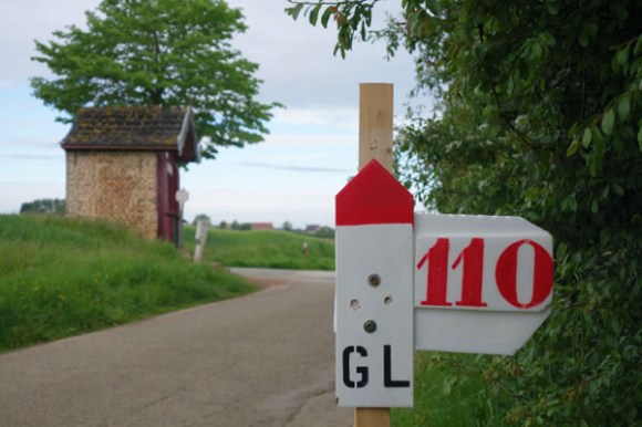 A gauche après la chapelle, bifurcation pour le 85 km. Signalétique verticale impeccable.