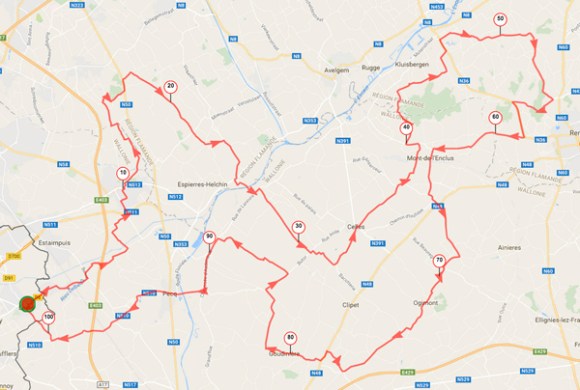 Beau parcours vers le Mont de l’Enclus et Renaix proposé par le Cycleers pour le parcours le plus long de 105 kilomètres.