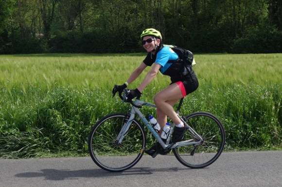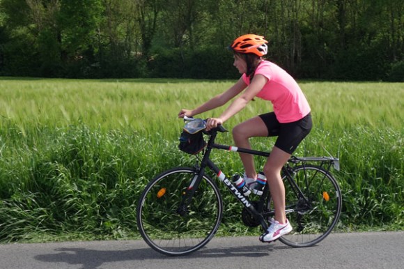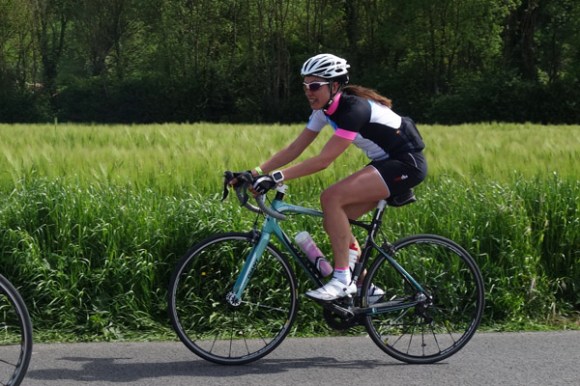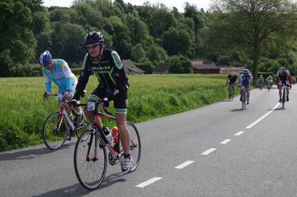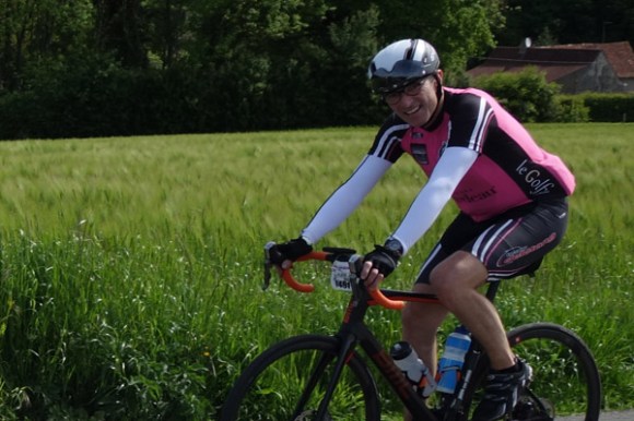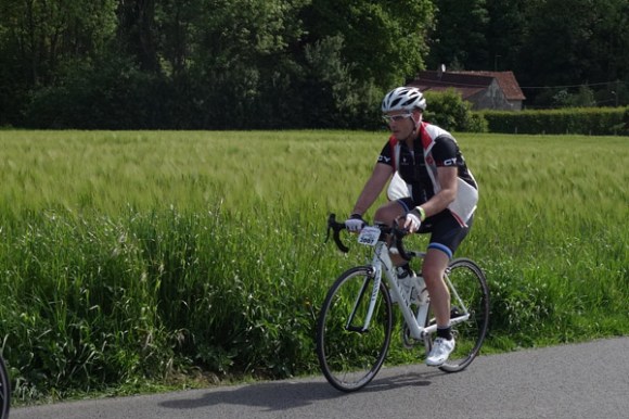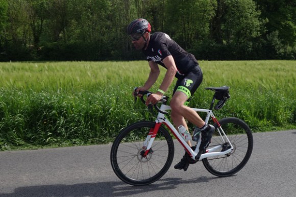 Pas d’inquiétude pour ce cycliste qui n’a pas chuté mais s’étire avant d’affronter l’ultime tronçon.