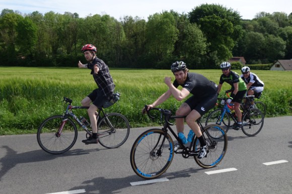 Départ de Saint Omer sur un tronçon pavé mais qui n’a rien de vraiment méchant.