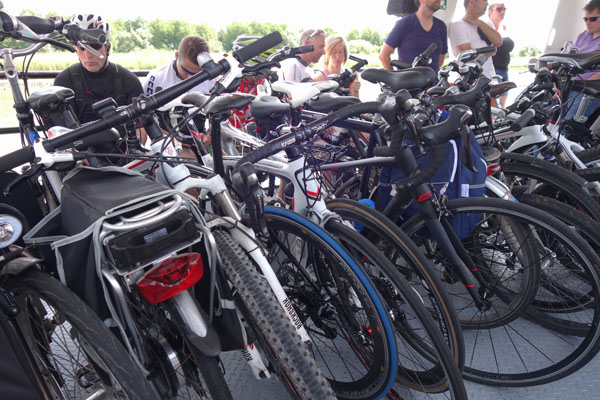 Vélos en tous genres cohabitent, le temps de cette traversée.