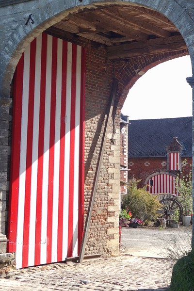 Vantaux des portes et fenêtres de vastes corps de fermes sont souvent peints en bandes verticales de couleurs alternées.