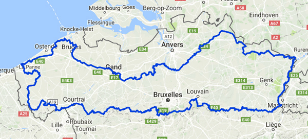 La Vlaanderen Fietsroute est une grande boucle de plus de 800 kilomètres qui traverse les cinq provinces flamandes de la Mer du nord à la Meuse.