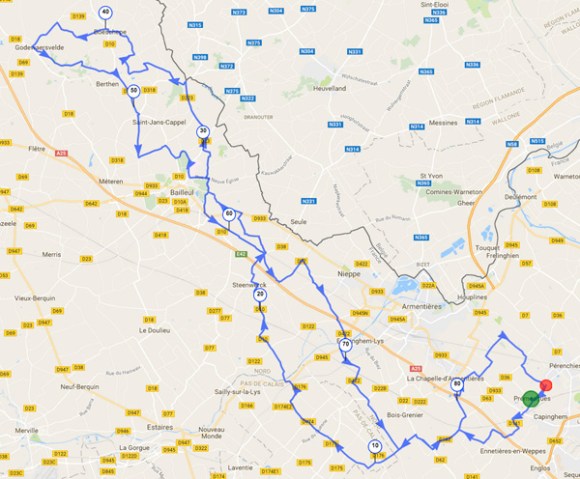 Dommage, car le parcours classique mais sympathique du 90 kilomètres nous faisait passer par le Mont Noir et le Mont des Cats.