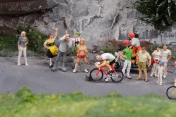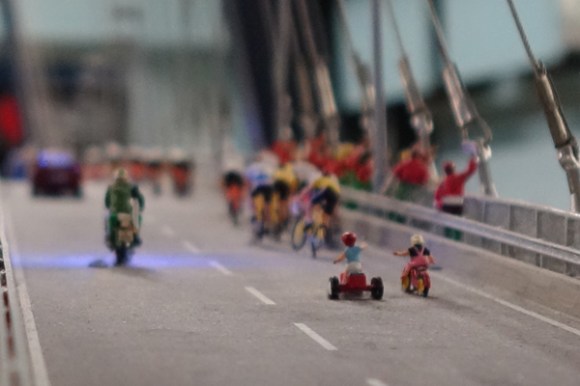 Vous imaginez bien que dans une reconstitution d’une telle envergure, des vélos se rencontrent ici ou là. En voici quelques-uns que j’ai repérés, sans prétendre loin de là à l’exhaustivité. J’ai tiré de cette visite un enseignement : les petits cyclistes, même immobiles, sont tout aussi difficiles à photographier que les grands.