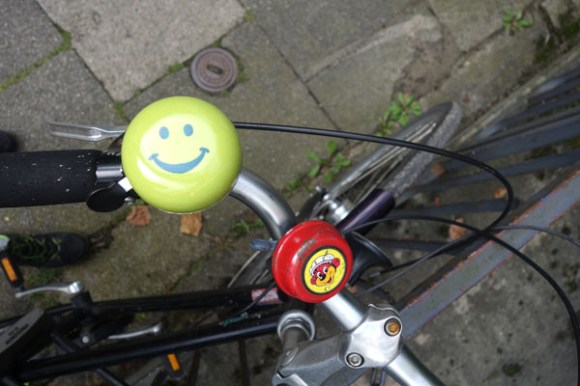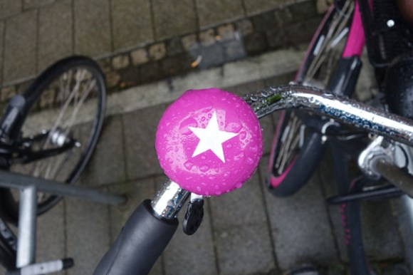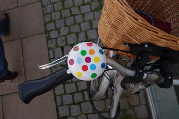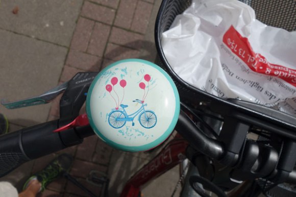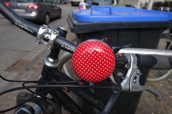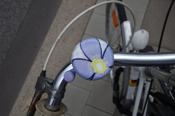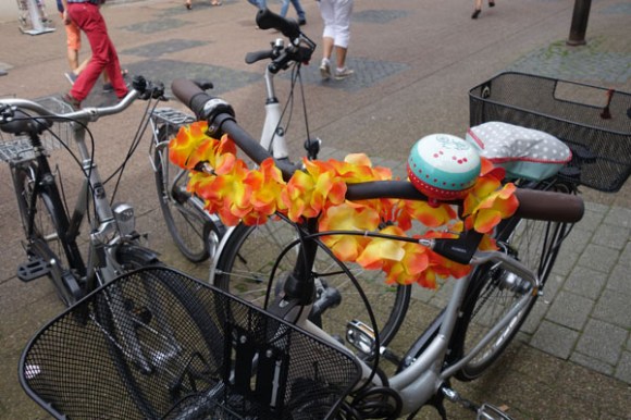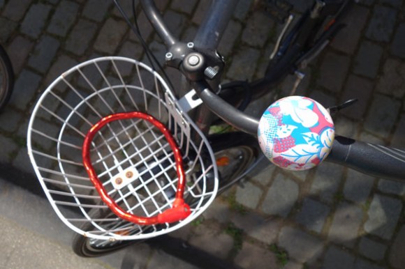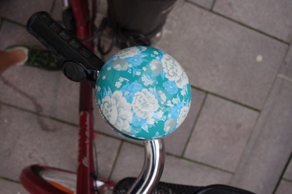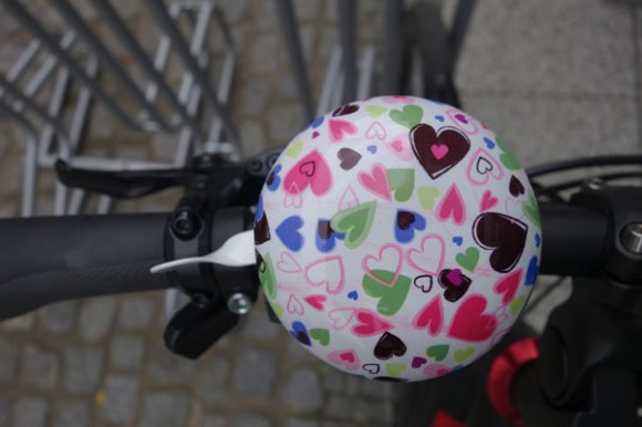 Guirlande au guidon, sonnette colorée, couvre-selle à pois, on ne risque de le confondre avec un autre.
