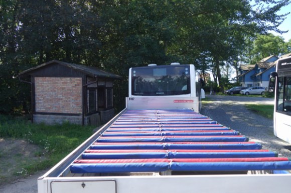 Je n’avais jamais croisé dans les transports publics ce type de remorque rencontrée dans l’île de Rügen. Un important réseau de pistes cyclables est complété par des bus transportant cyclistes et deux roues.
