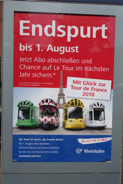 Düsseldorf garde encore début Août les traces du départ du Tour. De grandes affiches ornent la place de l’Hôtel de Ville.