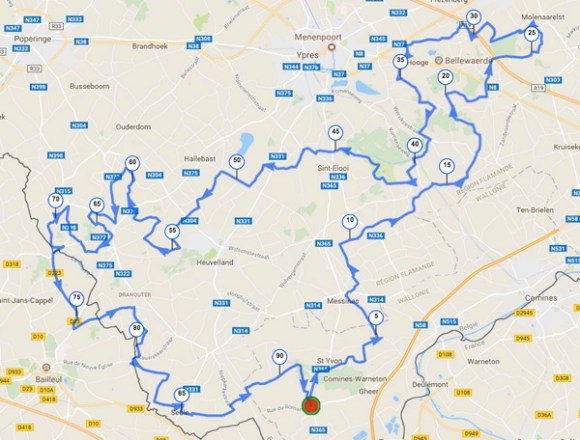 C’est un circuit très plaisant que le 90 kilomètres proposé par l’Elan Ploegsteert. Si le Mont Rouge et le Mont Noir, principales éminences du parcours, ne sont franchis que dans le dernier tiers du parcours, le reste du circuit est plutôt vallonné.