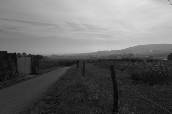 Le soleil bien présent dans le ciel et dans les champs.