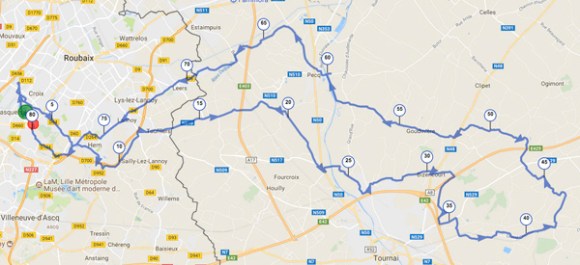 Considérant ma très courte nuit et un retour attendu vers 11h30, le 80 kilomètres de la Randonnée Jean-Luc Vancauwenberghe organisée par le CC Wasquehal convenait très bien, d’autant que je ne découvris que sur place, faute d’avoir bien lu les indications figurant sur Cyclos59, que le 60 kilomètres que je prévoyais de faire n’était pas au programme.