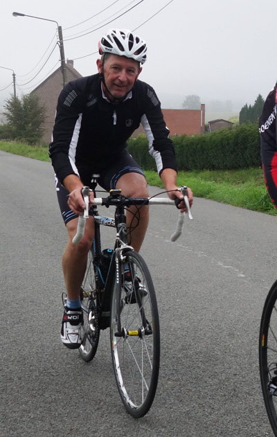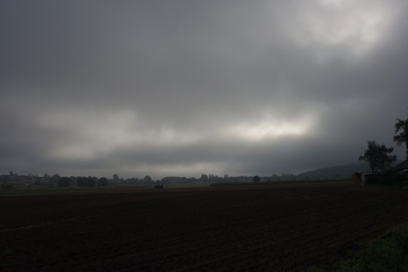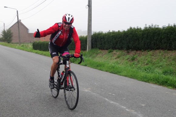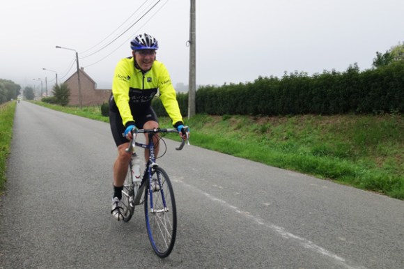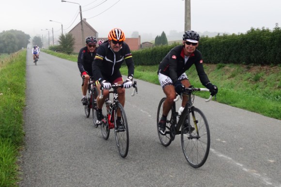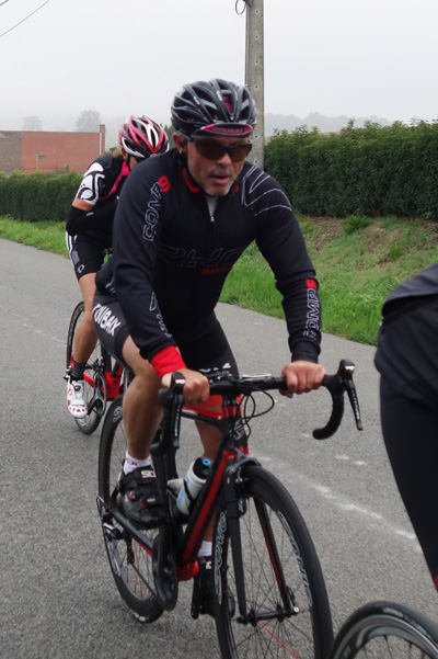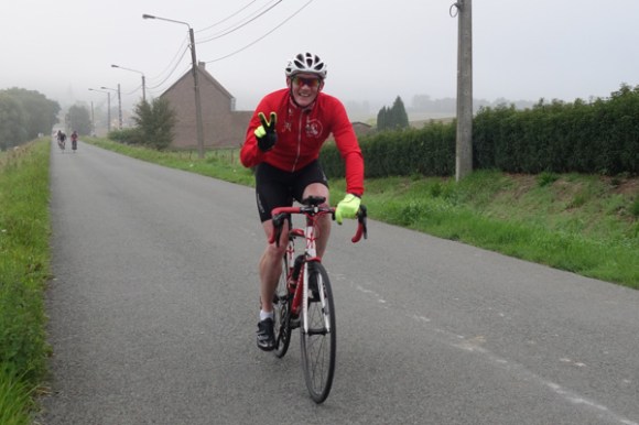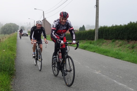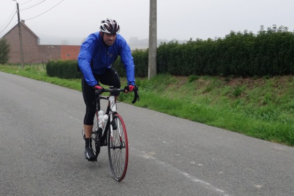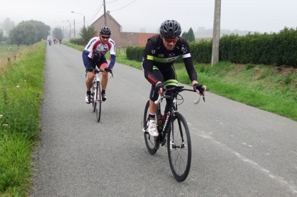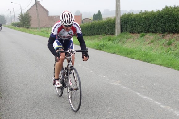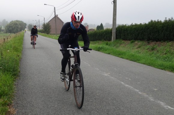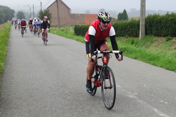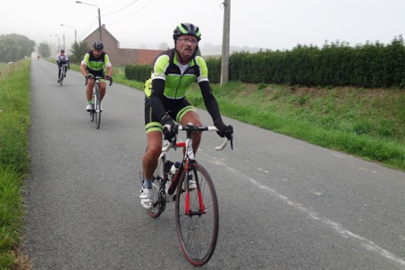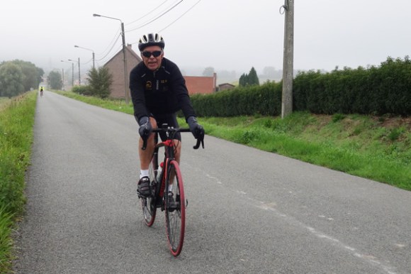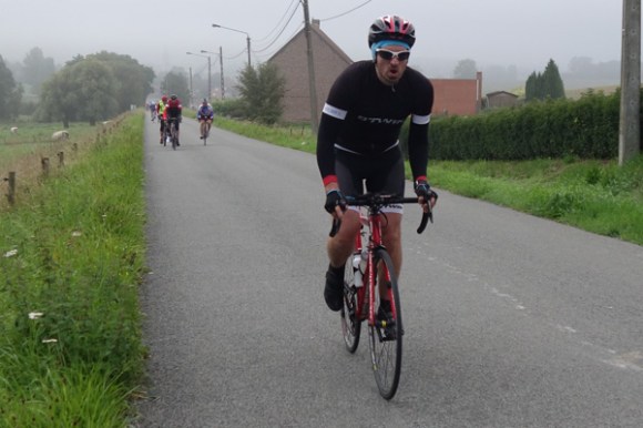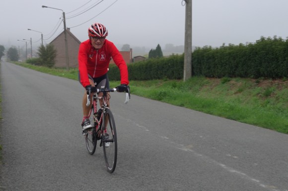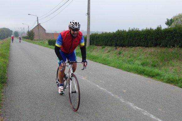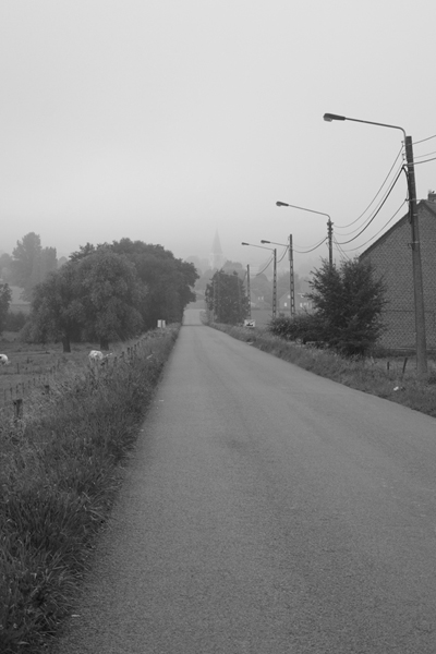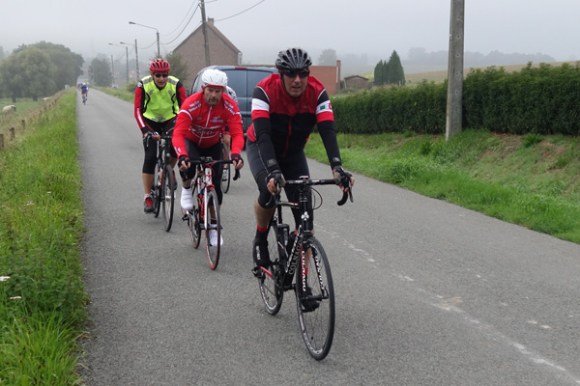 Si le petit matin laissait espérer le soleil d’Austerlitz, ce fut la brume de Waterloo qui finalement prévalut nous privant de paysages. Posté au sommet de la côte de Thimougies, un peu avant le ravitaillement, je mettrai un terme à ma séance de prises de vues commençant à être transi et soucieux de respecter l’horaire de retour annoncé.