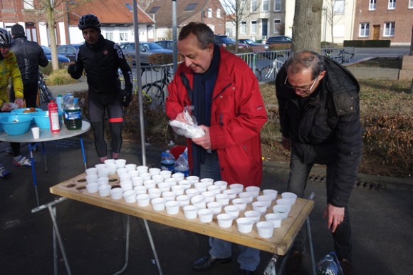Mons en Pévèle, ravitaillement au soleil.