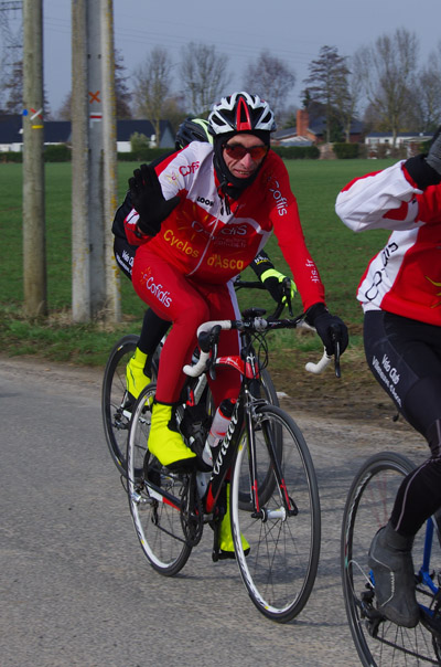 Je n’irai pas bien loin car au stop situé à cent mètres de là un coup d’œil en arrière me fera apercevoir de nouveaux cyclistes.