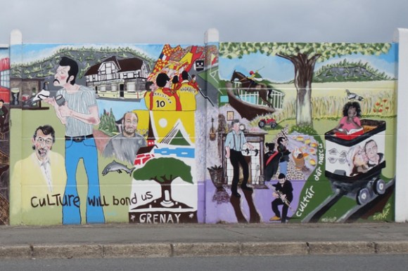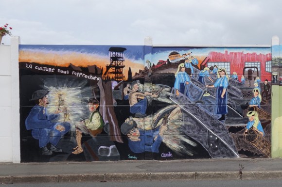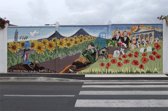 Ces fresques colorées le long du mur du cimetière de Grenay, méritaient une halte.