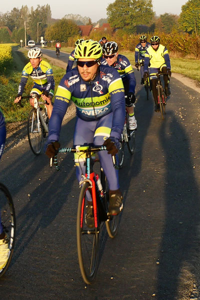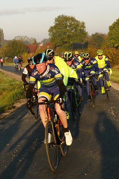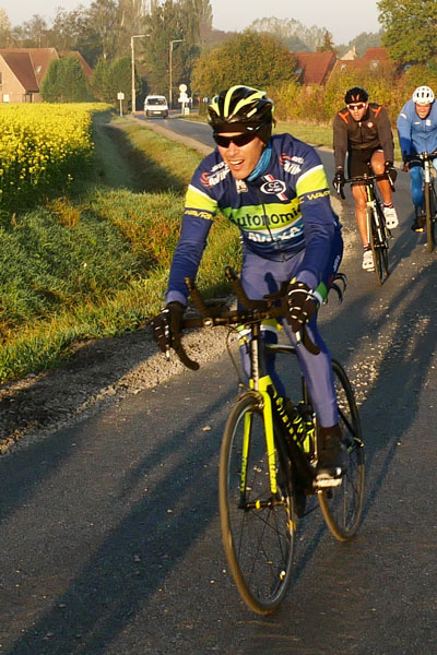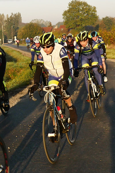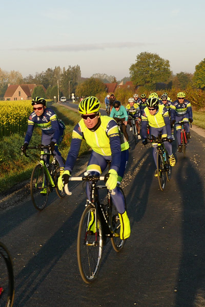Petit retour le long du golf de Mérignies pour ensuite faire un bond après le ravitaillement, que je sauterai. Dépassé par deux gros pelotons un peu avant, je ne m’y suis pas arrêté y voyant l’opportunité de photos supplémentaires. La faible distance du jour et mon ravitaillement personnel feront que je ne connaîtrai pas d’hypoglycémie.