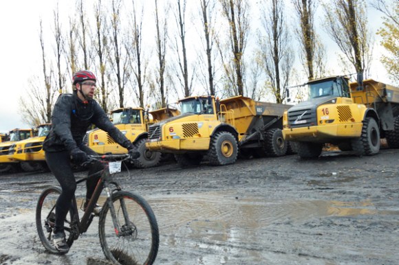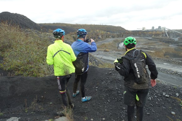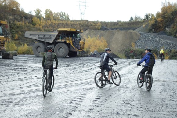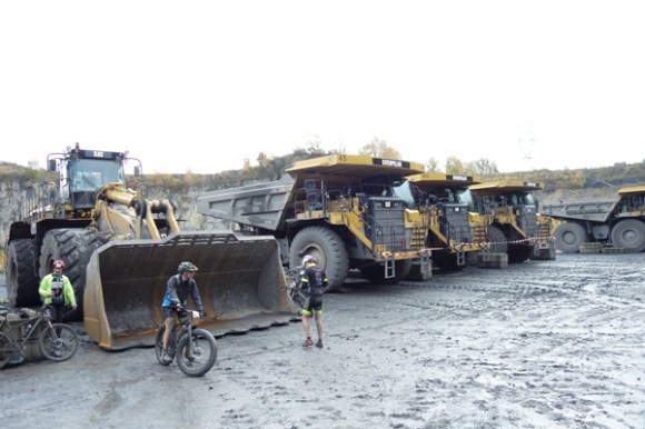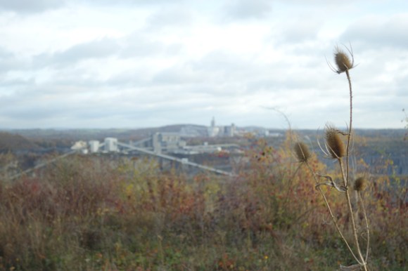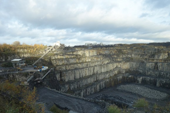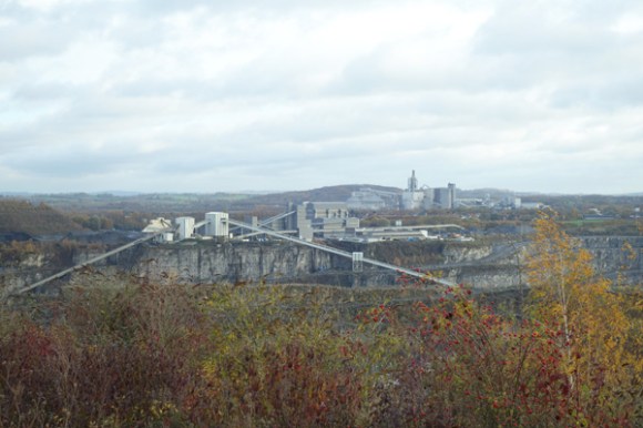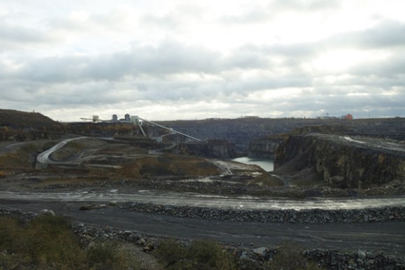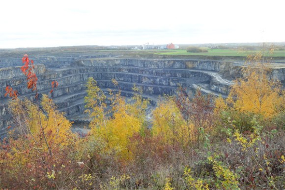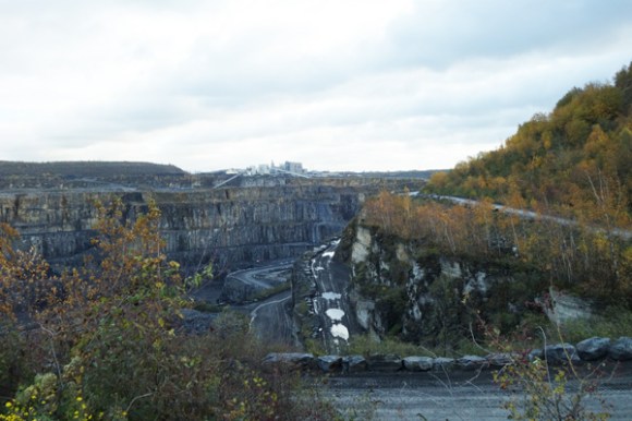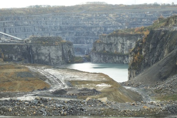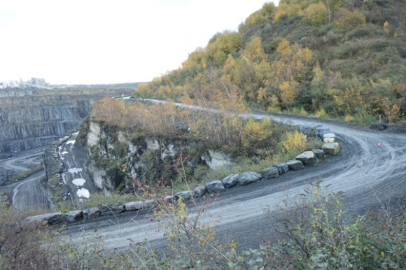 La traversée de la carrière est saisissante, tant par les paysages que l’on ne soupçonne pas avant d’être parvenu en haut de ce qui fut sans doute autrefois un plateau que par les gigantesques engins de terrassement qu’elle abrite.