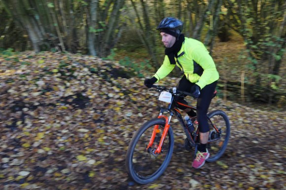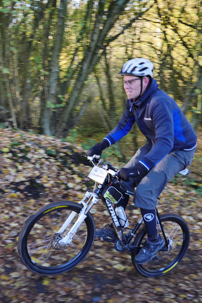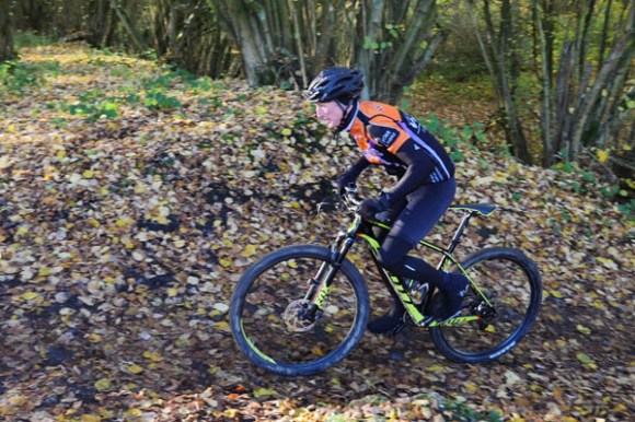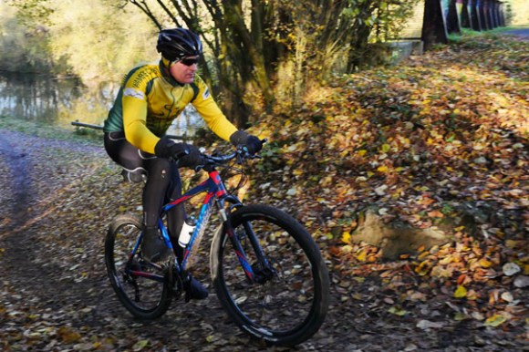 Le cyclo en rouge est pratiquement à l’arrêt, il s’apprête à faire du sur place.
