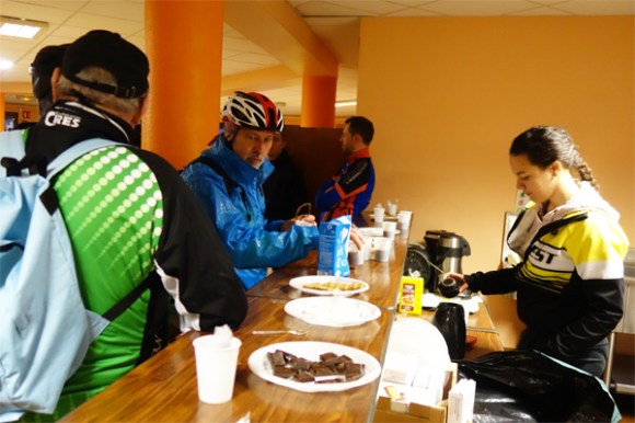 Café avec chocolat, biscuits, barres de céréales. Tout ce qu’il faut pour sustenter ceux qui sont partis un peu vite.