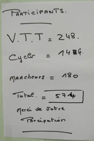 Dommage que le beau temps ne fût pas au rendez-vous. Cela eut sans doute une influence sur la fréquentation, d’autant que les prévisions de Météo France annonçaient une pluie continue. De fait quelques averses vinrent nous rafraichir, mais rien d’affreux. Le vent par contre étaient bien présent et certains tronçons rectilignes invitaient à adopter une position de conduite aérodynamique où à trouver un lièvre bienveillant.
