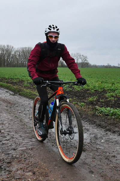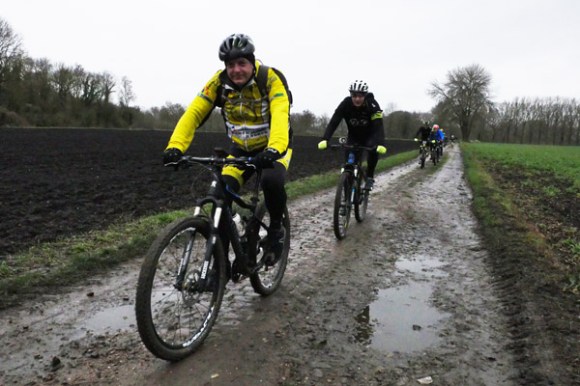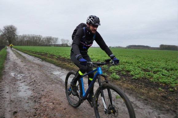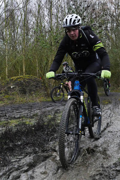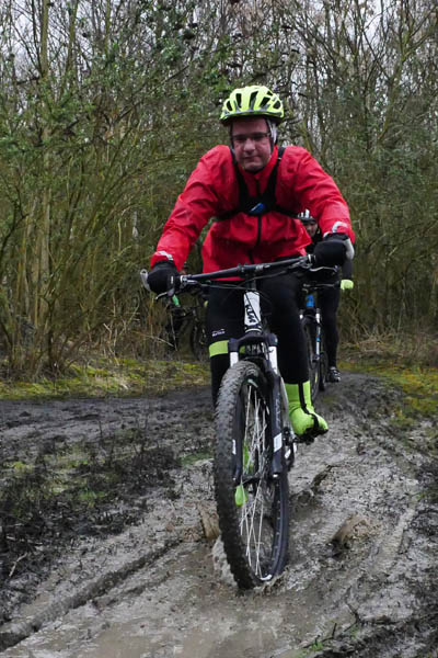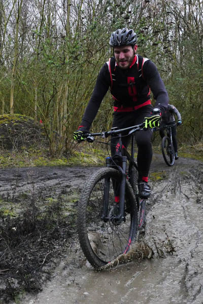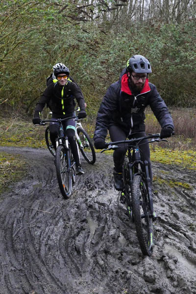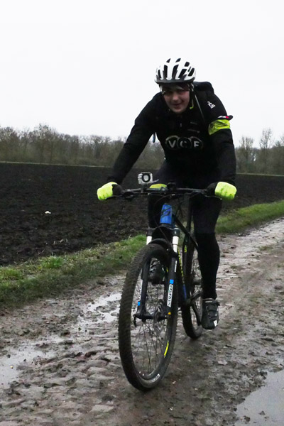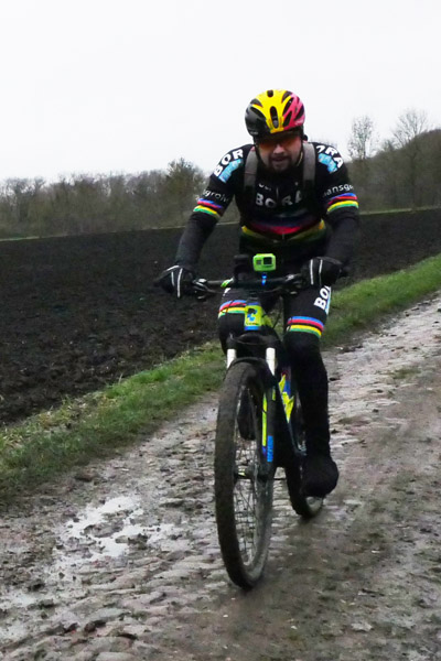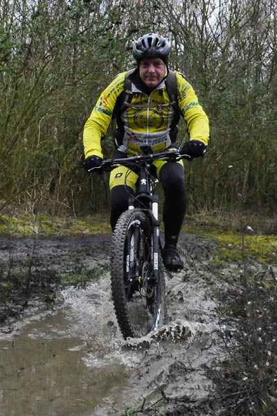 A la sortie de la petite montée, un passage boueux en virage qui surprend.