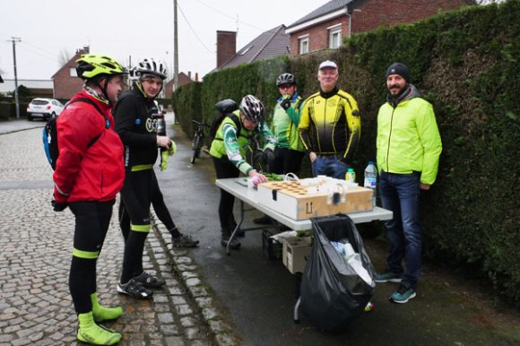 Dommage que le beau temps ne fût pas au rendez-vous. Cela eut sans doute une influence sur la fréquentation, d’autant que les prévisions de Météo France annonçaient une pluie continue. De fait quelques averses vinrent nous rafraichir, mais rien d’affreux. Le vent par contre étaient bien présent et certains tronçons rectilignes invitaient à adopter une position de conduite aérodynamique où à trouver un lièvre bienveillant.