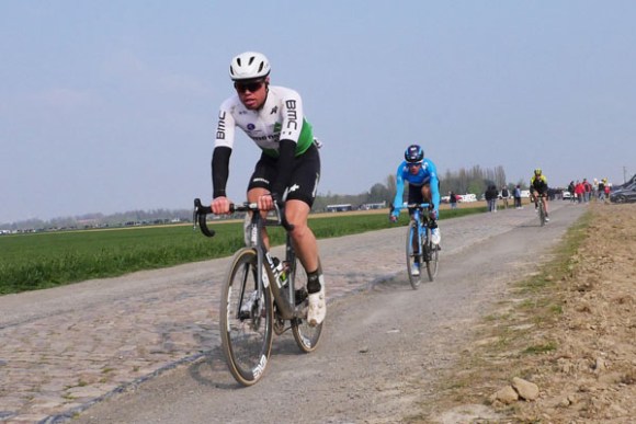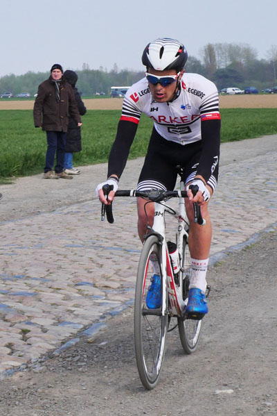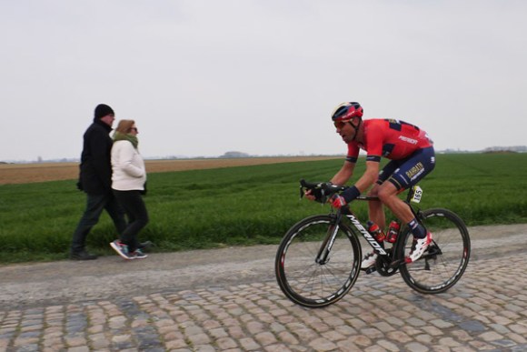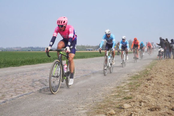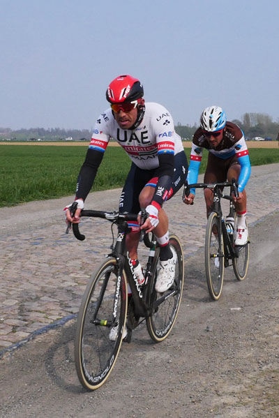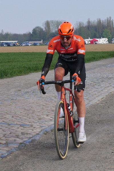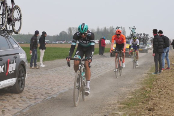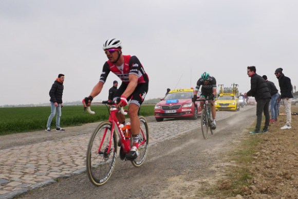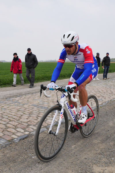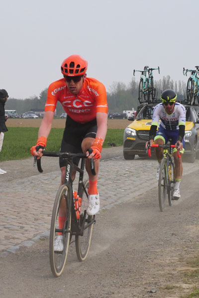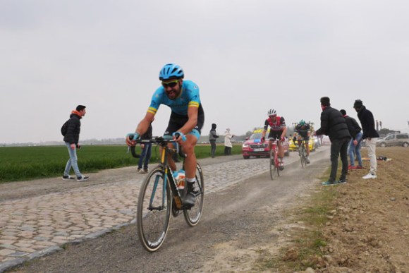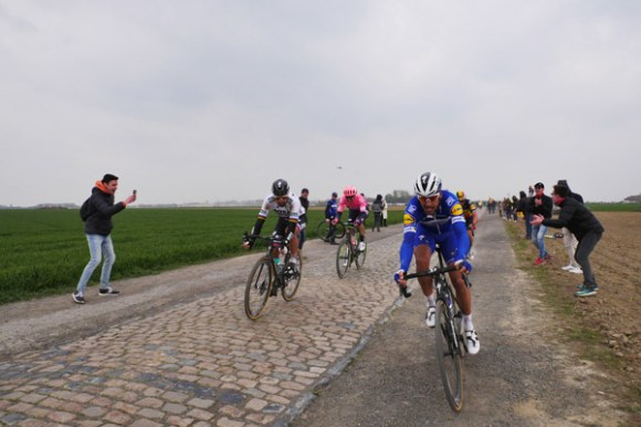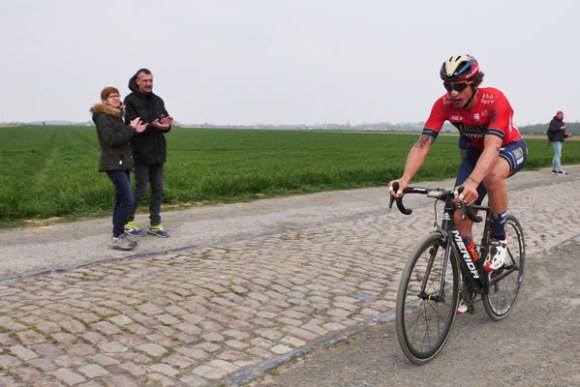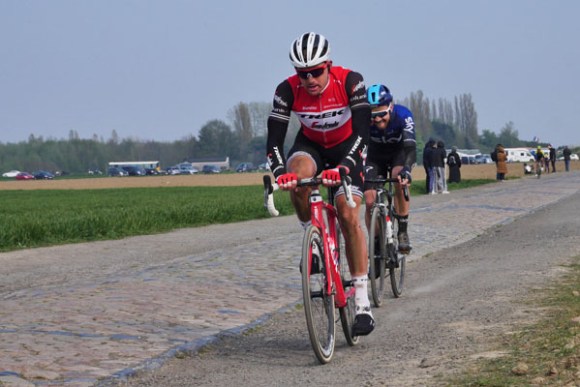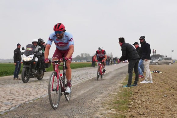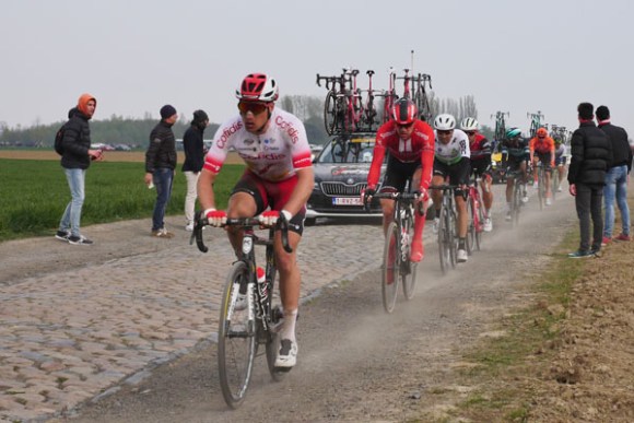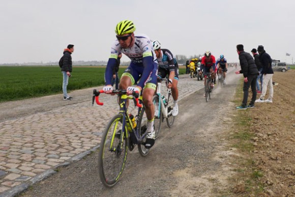 Fin du secteur pavé de Gruson. Un dernier secteur attend les coureurs, si l’on excepte le minuscule tronçon précédent le vélodrome.