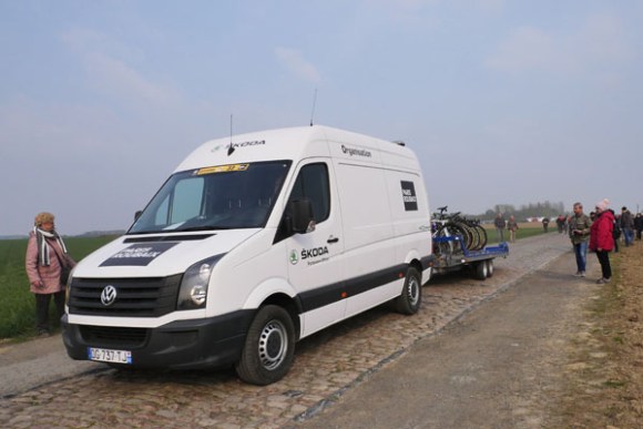 Ce n’est pas la voiture balai, comme pourrait le laisser penser la remorque porteuse de vélos.