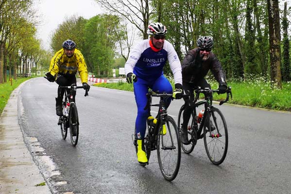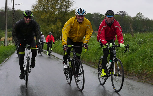 Triste dimanche pour un brevet. La météo joue au yoyo. Tenue d’hiver et coupe pluie de rigueur pour cette Randonnée du Ferrain, organisée par l’Union Cycliste Neuvilloise.