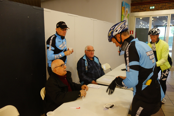 Dommage, car le parcours cheminant en direction du Mont de l’Enclus (que seuls les participants au 100 km atteindront) était plaisant, empruntant de petites routes sinueuses et vallonnées. Certes, les couleurs n’étaient pas au rendez-vous et mieux valait disposer d’un coupe pluie étanche. Mais quand même, un petit effort ne serait-ce que pour faire le 45 km aurait été le bienvenu en contrepartie des efforts faits par le club pour l’organisation de cette sortie.