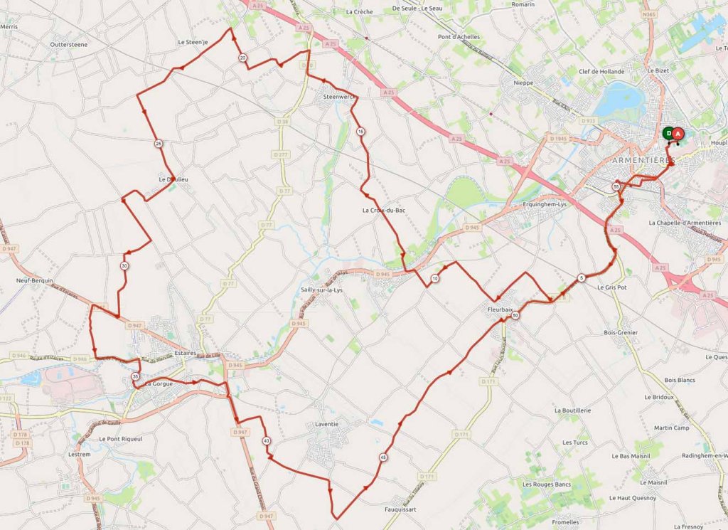 Retour sans désagrément cette année vers Armentières pour un parcours dans les Weppes et la Flandre. Ma contrainte horaire, ne m’empêcha pas seulement de manquer la venue de la Reine des Nieulles mais aussi de suivre le 90 kilomètres qui partait vers le Mont Noir et le Mont des Cats. Je dus cette semaine encore me satisfaire de la plaine.