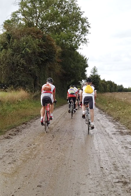 Après un été plutôt sec, les pluies récentes transforment certains passages en champs de boue. Pas de regret de n’avoir pas nettoyé mon vélo après ma sortie dominicale.