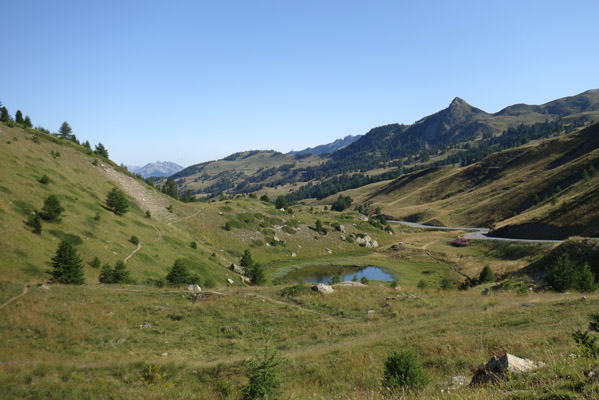 Sans doute n’ai je pas suffisamment mangé ce matin, un arrêt eau et ravitaillement s’impose. Je ne garde pas de souvenir précis de cette montée, sans doute trop concentré sur l’effort et la gestion de mes ressources dans l’ascension. J’ai noté que j’ai mis une heure dix pour monter depuis Saint Paul et que la description du trajet sur un dépliant présentant les cols de l’Ubaye se révélera pour le moins fantaisiste annonçant une pente moyenne de 10% dans les cinq derniers kilomètres.