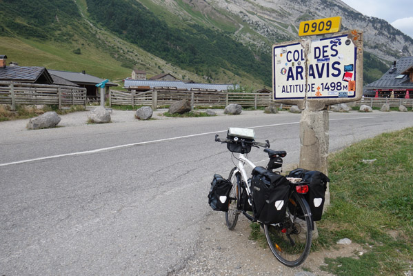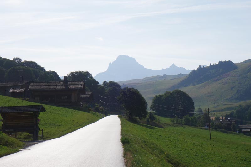 Les quelques kilomètres qui séparent Praz sur Arly de Couper au pied du col ne permettent pas vraiment une mise en chauffe et il me faut un peu de temps avant de trouver le rythme. L’ascension se fait sous un ciel partiellement couvert. Au col, je ne prends que le temps de quelques photos et me laisse descendre vers le Grand Bornand.