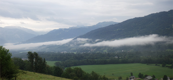 Ce qui sera pour moi la dernière étape de ma presque grande traversée des Alpes ne restera pas marquée d’une pierre blanche, la faute en partie au temps. L’orage de la veille était loin et sauf à ce que mon sommeil fût de plomb, il n’avait pas plu de la nuit. Si quelques gouttes hâtèrent la fin de mon démontage de tente, rien d’affreux et je pris le départ en même temps qu’un couple de cyclos allemands qui entreprenaient en sens inverse l’étape que j’avais faite la veille.
