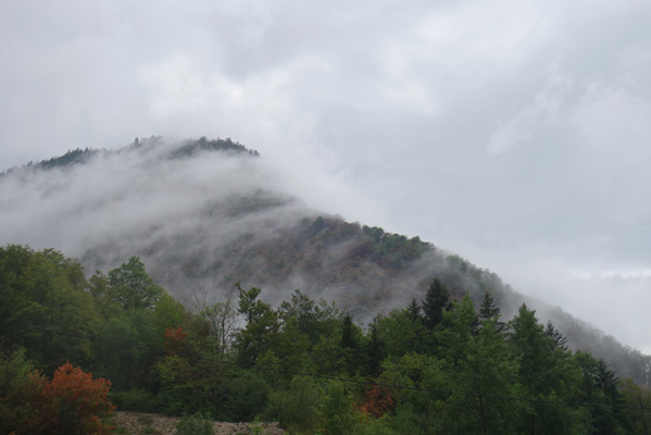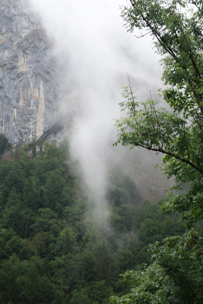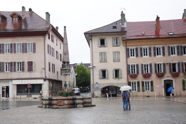 A l’approche des Gets, dont l’appellation de Porte du soleil était ce jour-là usurpée, la pluie se fait intense et après un moment passé à l’abri d’une avancée de toit, il faut me rendre a l’évidence. Aucune accalmie, n’est à attendre rapidement et mieux vaut continuer à rouler. La descente vers Thonon sera mouillante et réfrigérante parmi voitures et camions roulant à mon gré à trop vive allure. J’apprécierai à Saint-Jean-d’Aulps l’onctueux chocolat chaud préparé avec attention par la serveuse.