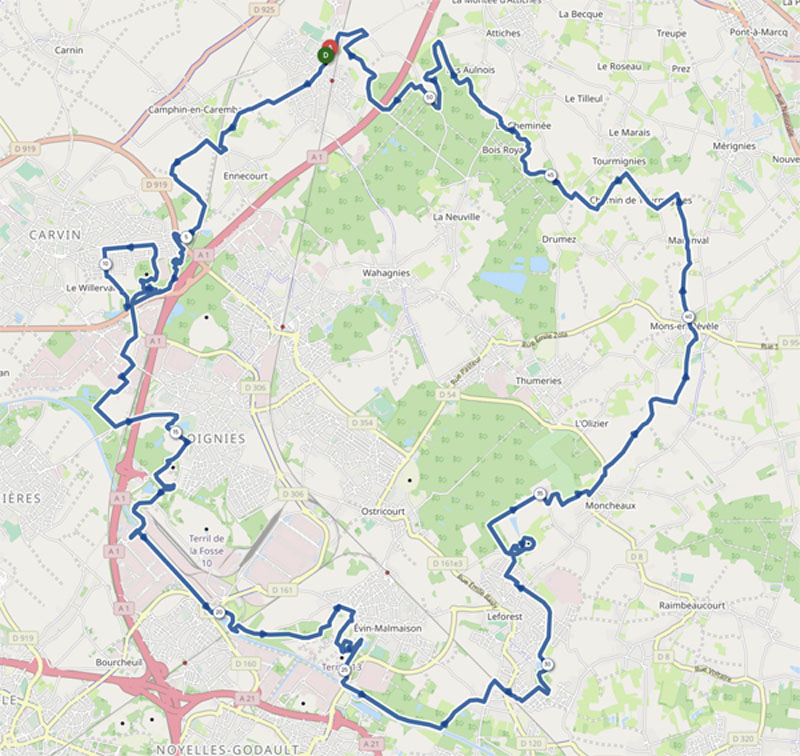 Le parcours de 53 km est très plaisant par la variété des terrains proposés, notamment les mono-traces en forêt et les 4 terrils traversés.