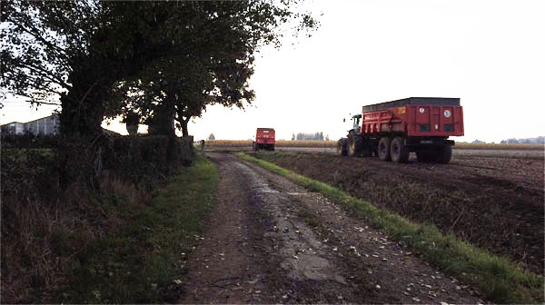 Spectaculaire renversement d’une remorque et de son chargement de pommes de terre.