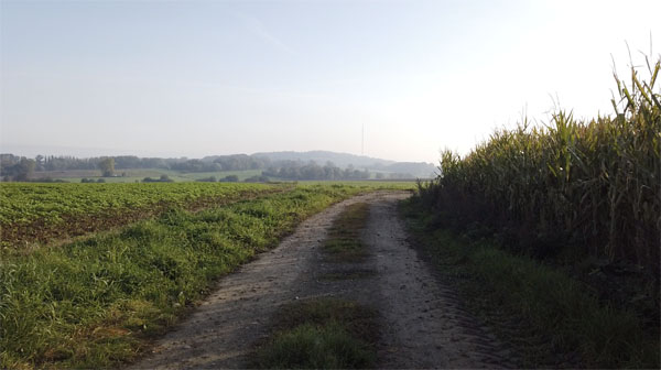 Une fin de chemin montant avec le soleil de face, une halte photo s’impose.