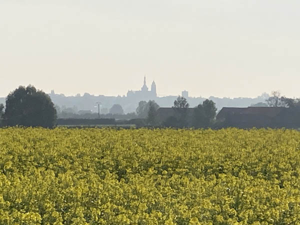 Le voile nuageux s’évacue progressivement et le Mont des Cats que l’on devine à l’horizon est déjà sous le soleil.
