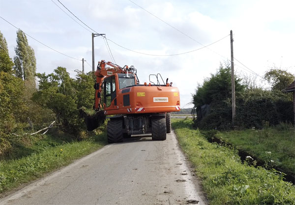 J’espérais pouvoir passer malgré les panneaux route barrée. Après hésitation, je préférerai faire demi-tour pour ne pas risquer l’accident, la pelleteuse étant en mouvement.