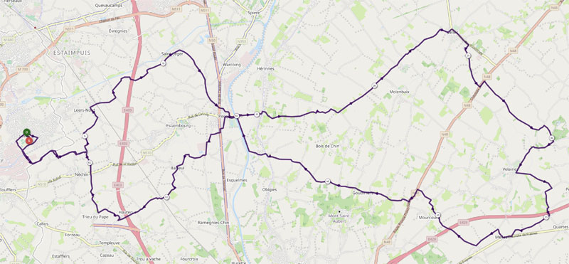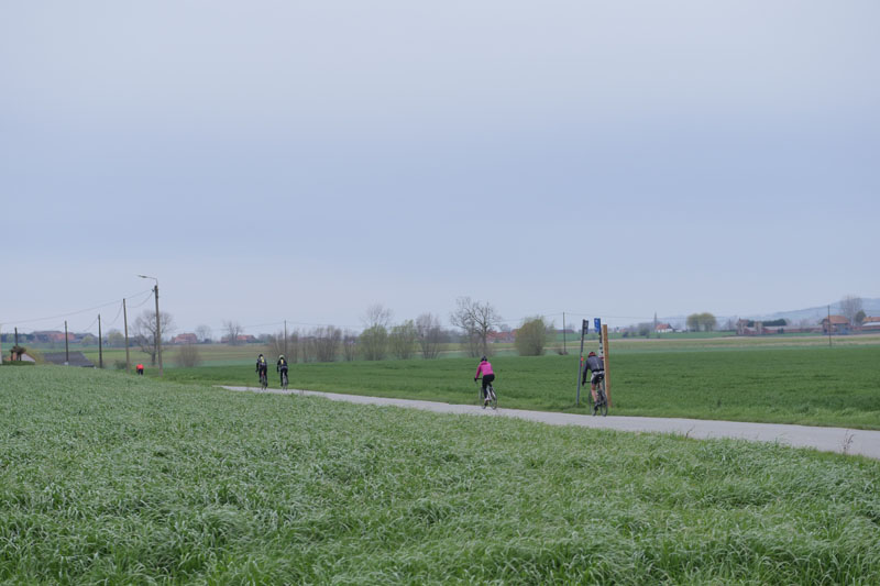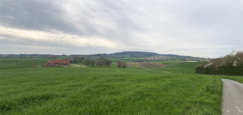 Empruntant des petites routes, le circuit offrait de beaux points de vue sur la chaîne des Monts et sur le Mont Kemmel. Ce dernier grouillait de cyclistes et de randonneurs, plusieurs sorties étant manifestement organisées ce jour au regard des nombreuses flèches directionnelles temporaires.