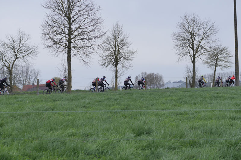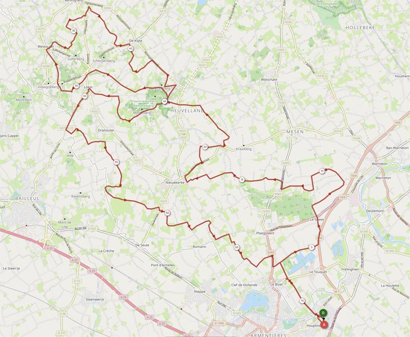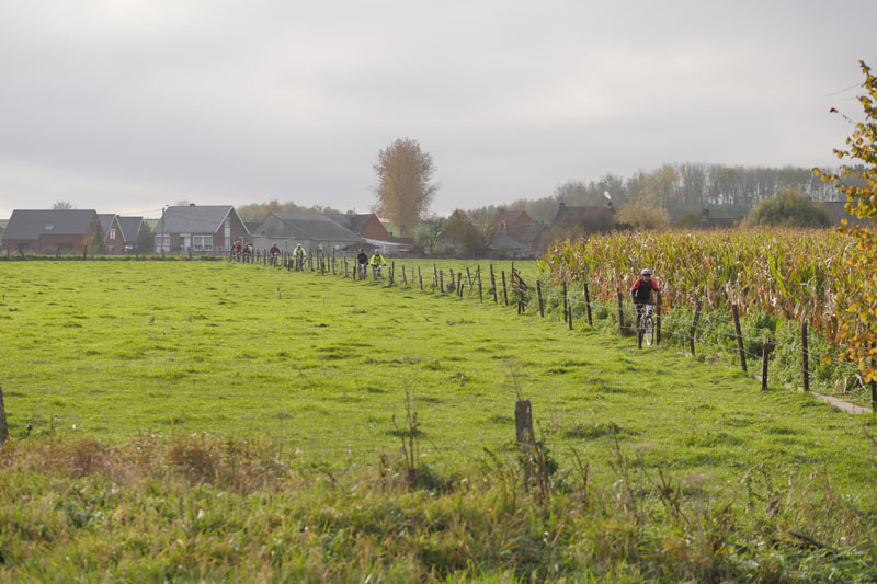 Une première partie nous conduisait au ravitaillement positionné au Mont Kemmel, où nous ramenait une boucle passant par le Mont Rouge. Le Heuvelland mérite bien son nom de Pays des collines et le parcours était animé par de nombreuses bosses.