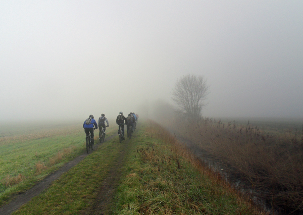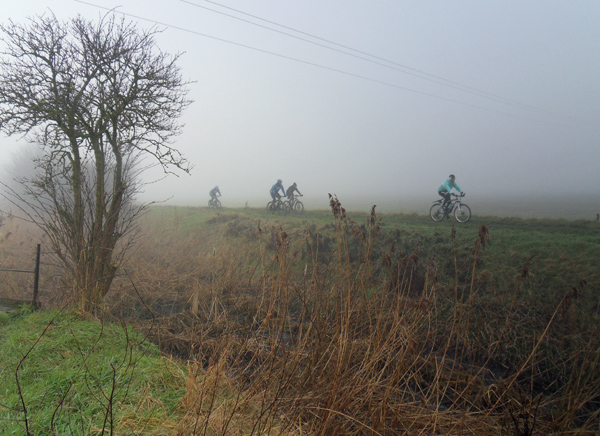 Ce n’était sans doute pas le bon jour pour étrenner de nouvelles pédales à cale pied automatique, présentées pourtant comme étant à l’épreuve des terrains les plus gras. Manque d’habitude, mauvais réglage ou boue excessive, j’ai passé une partie du brevet à tenter de caler mes chaussures, y parvenant parfois sans le vouloir, mais peut-être, à bien y réfléchir, après avoir traversé quelques belles flaques.
