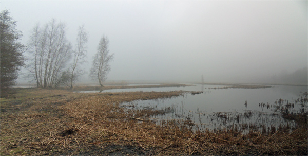 De petits étangs équipés de huttes de chasse, avec leur flottilles de leurres, bordent le canal de part et d’autre.